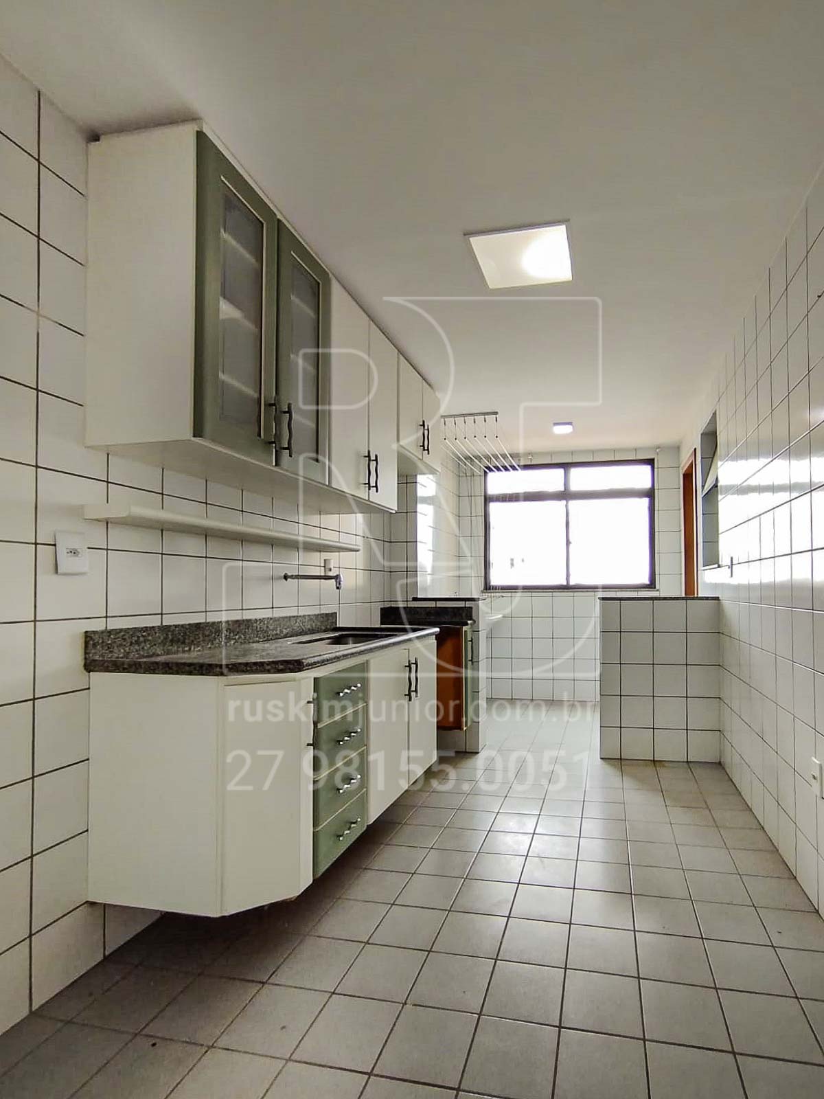 2 quartos sendo 1 suíte, sala, varanda, banheiro social, cozinha conjugada com área de serviço, banheiro de serviço e 1 vaga de garagem. Apartamento de 68 m².