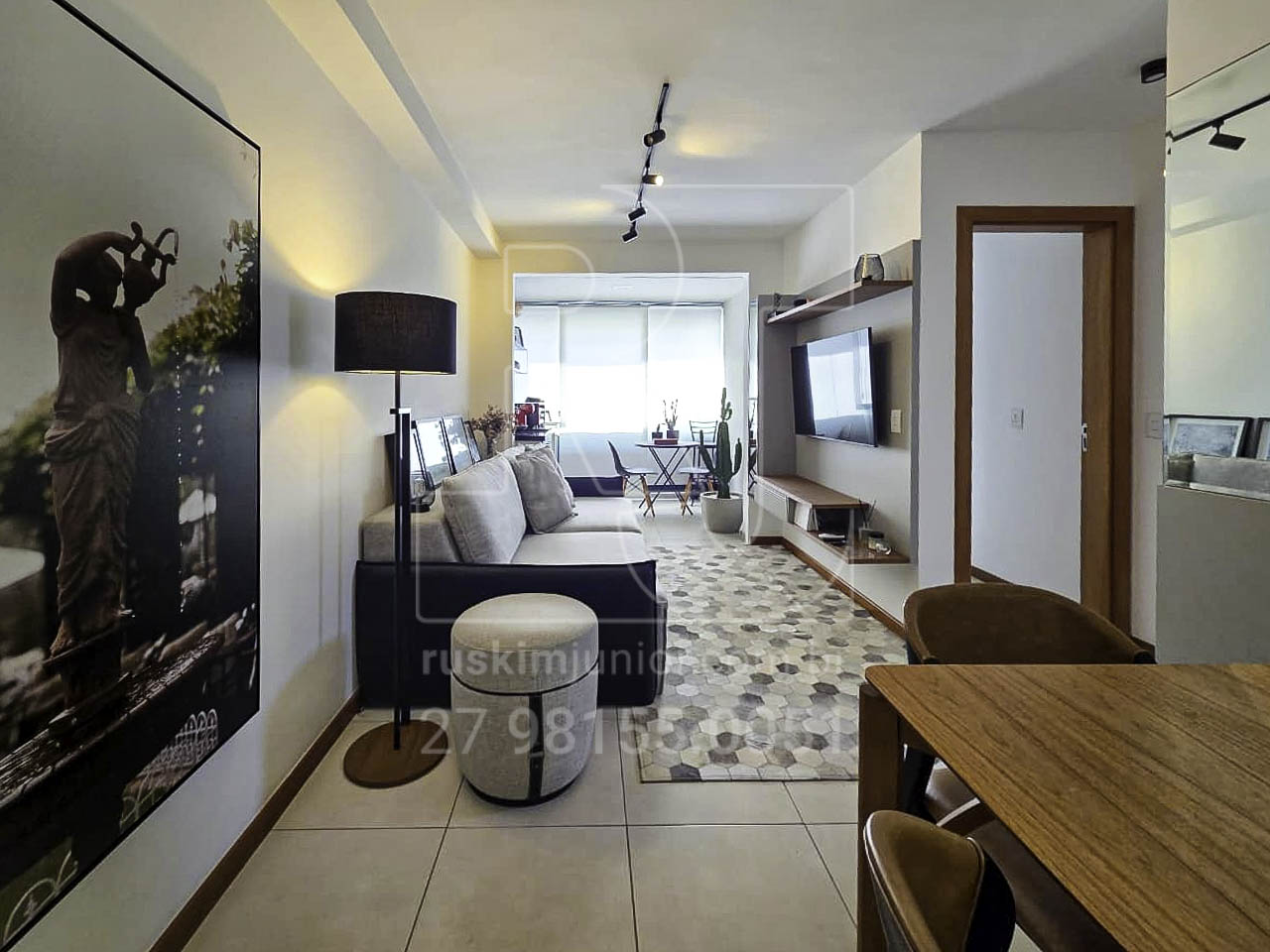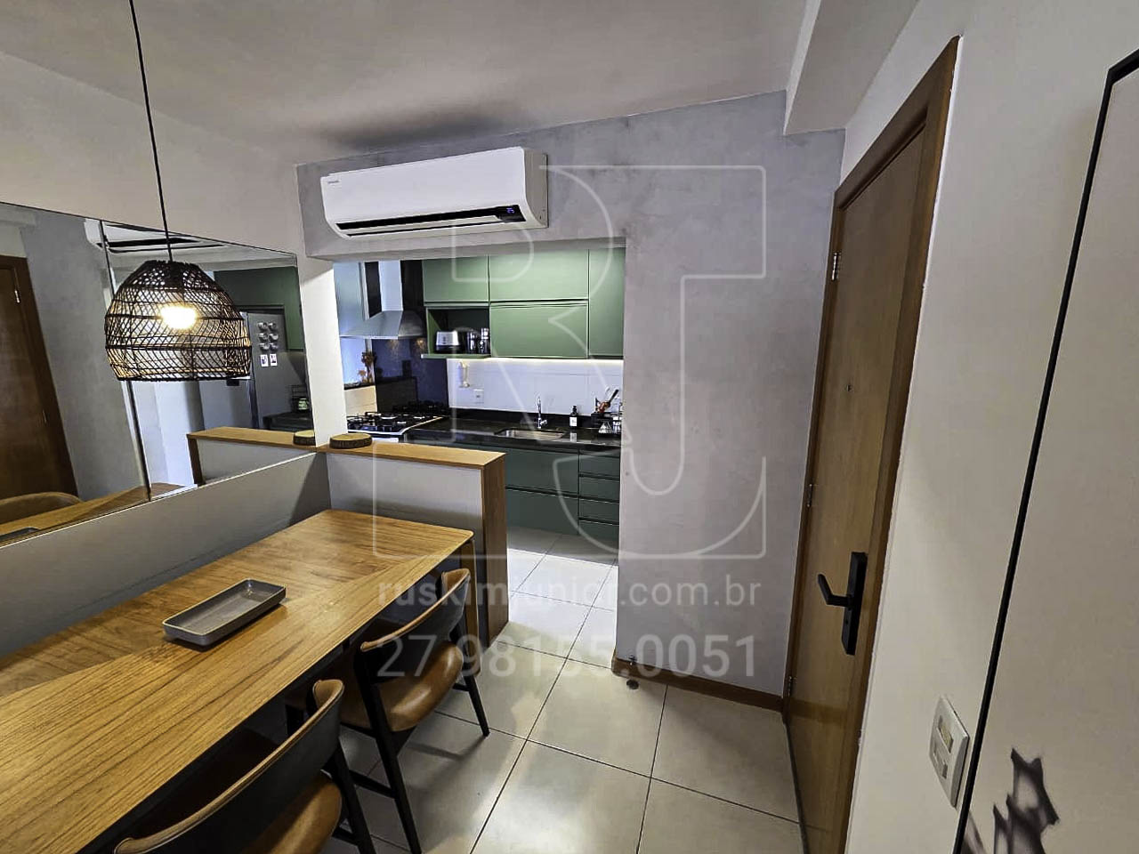 2 quartos sendo 1 suíte, sala integrada à varanda com fechamento de vidro, banheiro social, cozinha conjugada com área de serviço, chuveiros com aquecimento a gás e 1 vaga de garagem coberta. Portaria 24 horas e lazer com piscina, salão de festas e churrasqueira. Apartamento mobiliado de 68 m².
